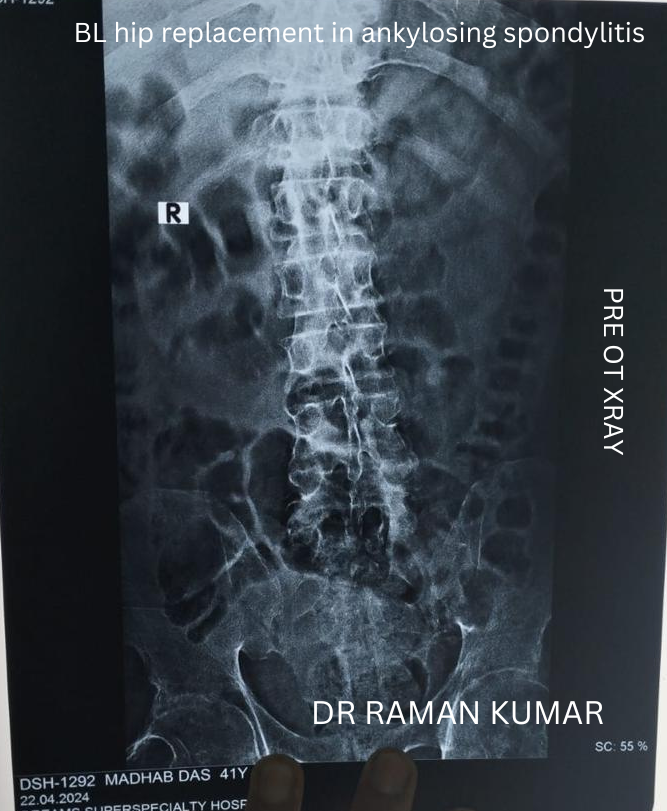 BL HIP REPLACEMENT IN ANKYLOSING SPONDYLITIS OF 43 YR MALE
